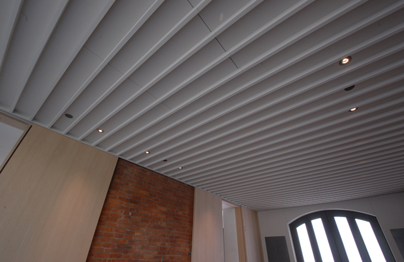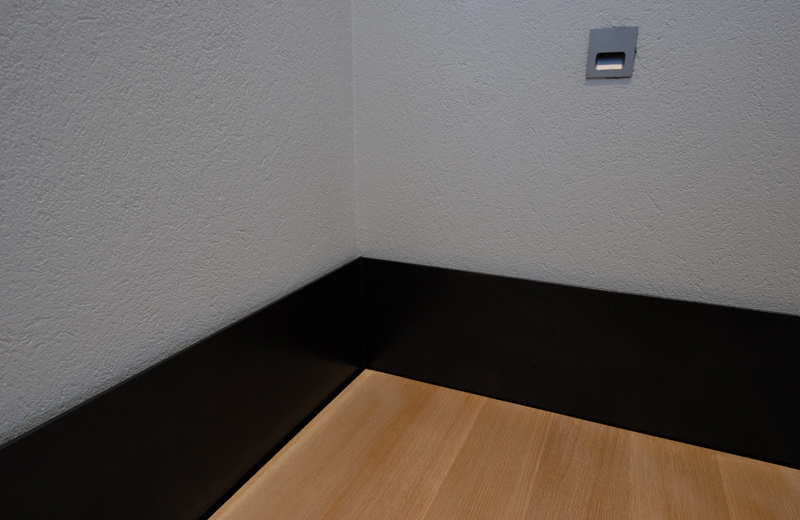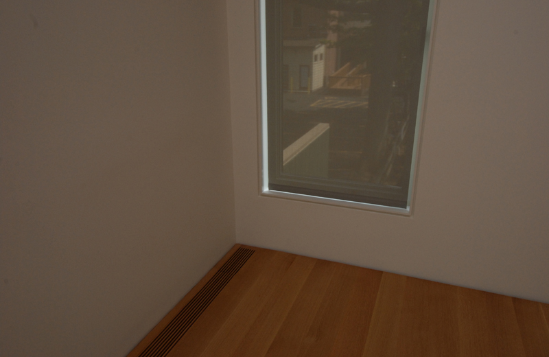 All mechanical and electrical systems are buried in the floors. Walls, floors, and ceilings come together without trim to cover the joints