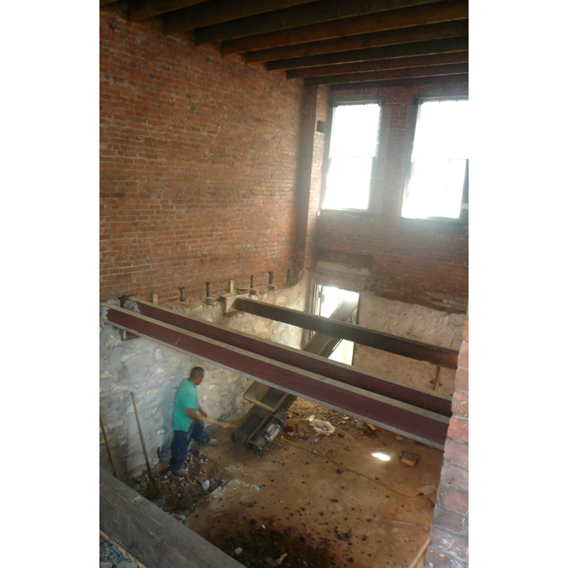 The first floor was removed and the walls were shored; the basement floor was excavated in order to create a full basement story