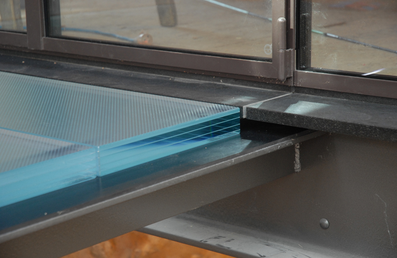 Two-inch glass planks create a patio that also serves as a basement skylight (photo taken during construction)