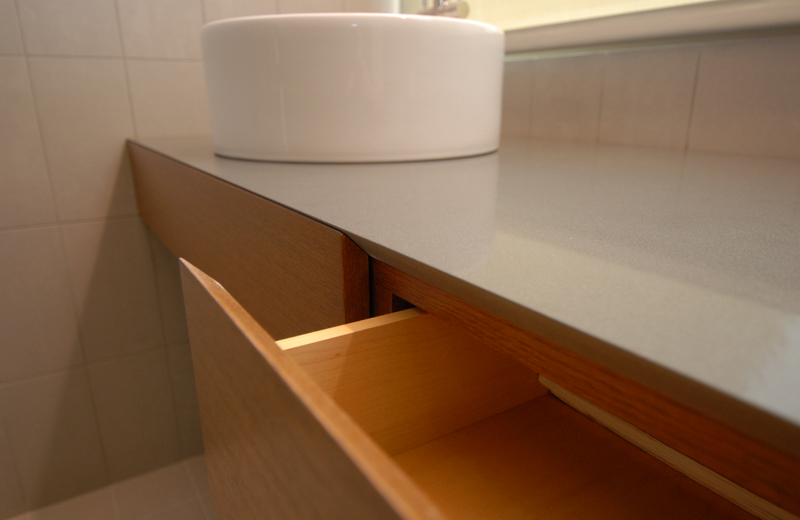 The master bath vanity is just one example of the project's exhaustive attention to detail and craftsmanship